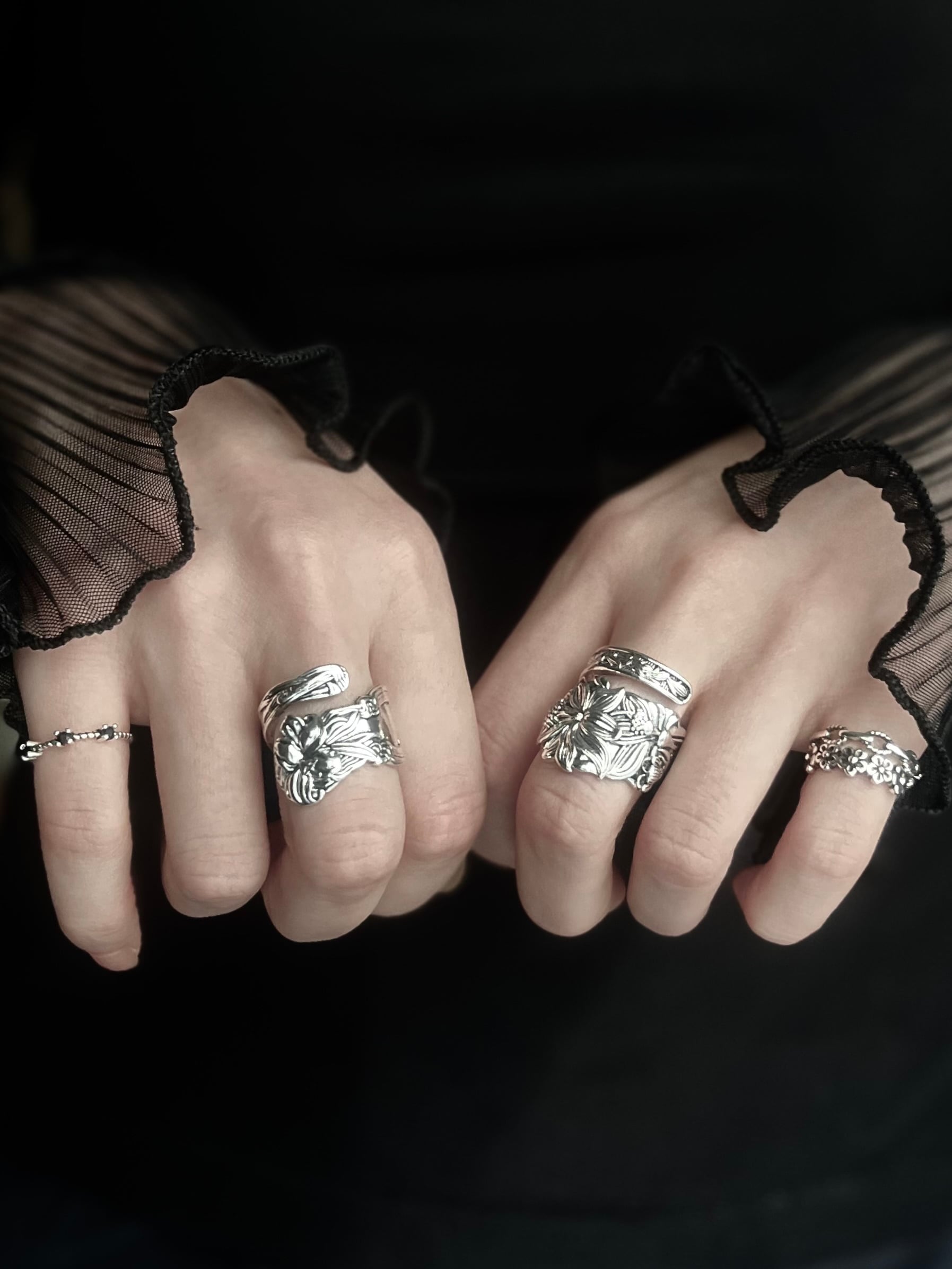 どこから見ても抜かり無いデザインが魅力のヴィンテージライクなフラワーデザインリング。