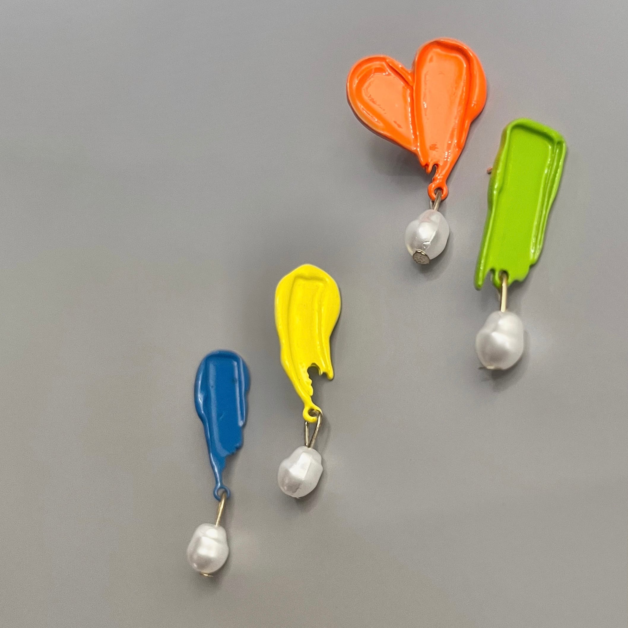 絵の具で遊び描きしたようなデザインを採用しカラーリングにも拘ったピアス。