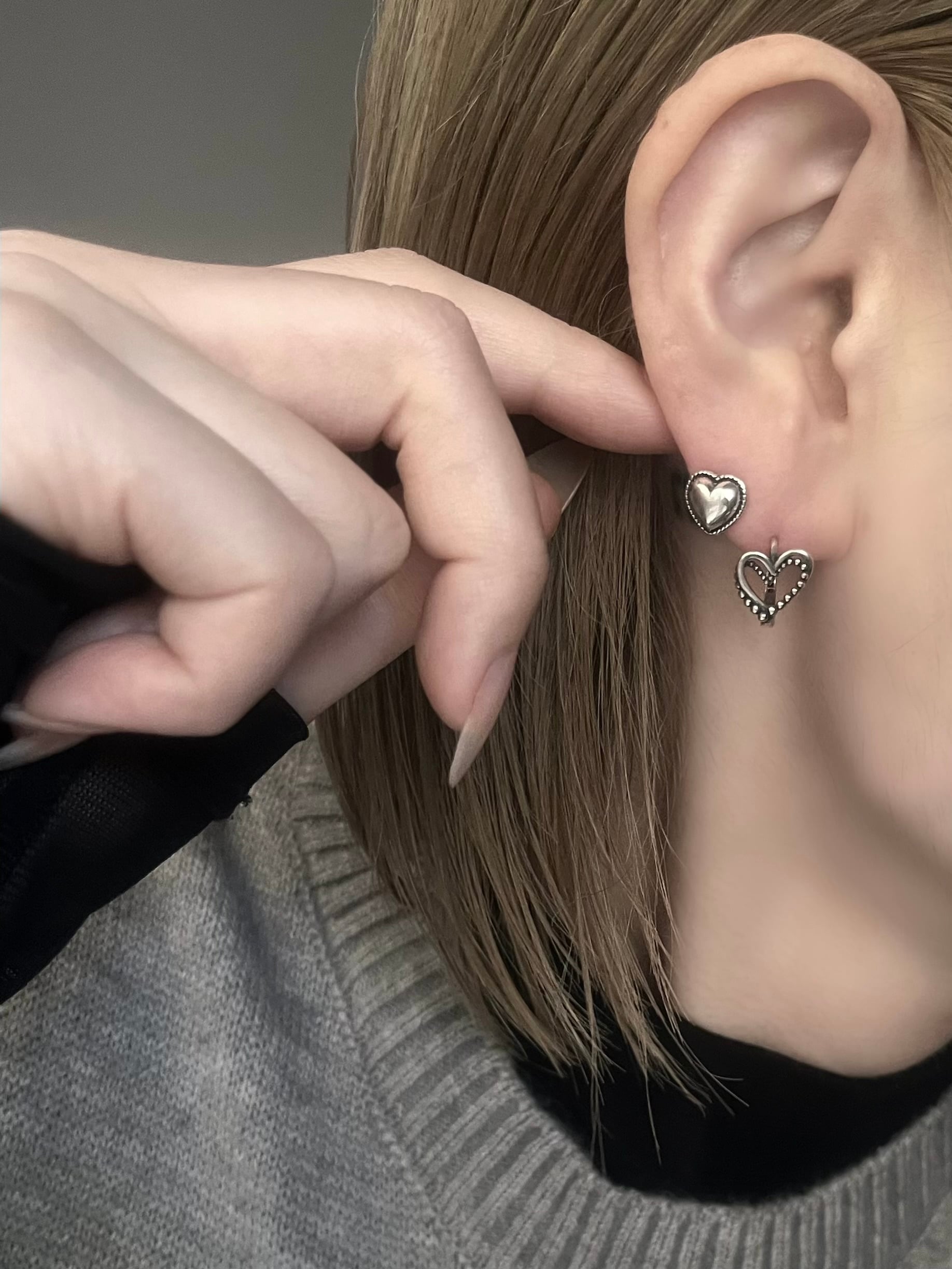 Silver925 Vintage Chubby Small Heart Design Pierces