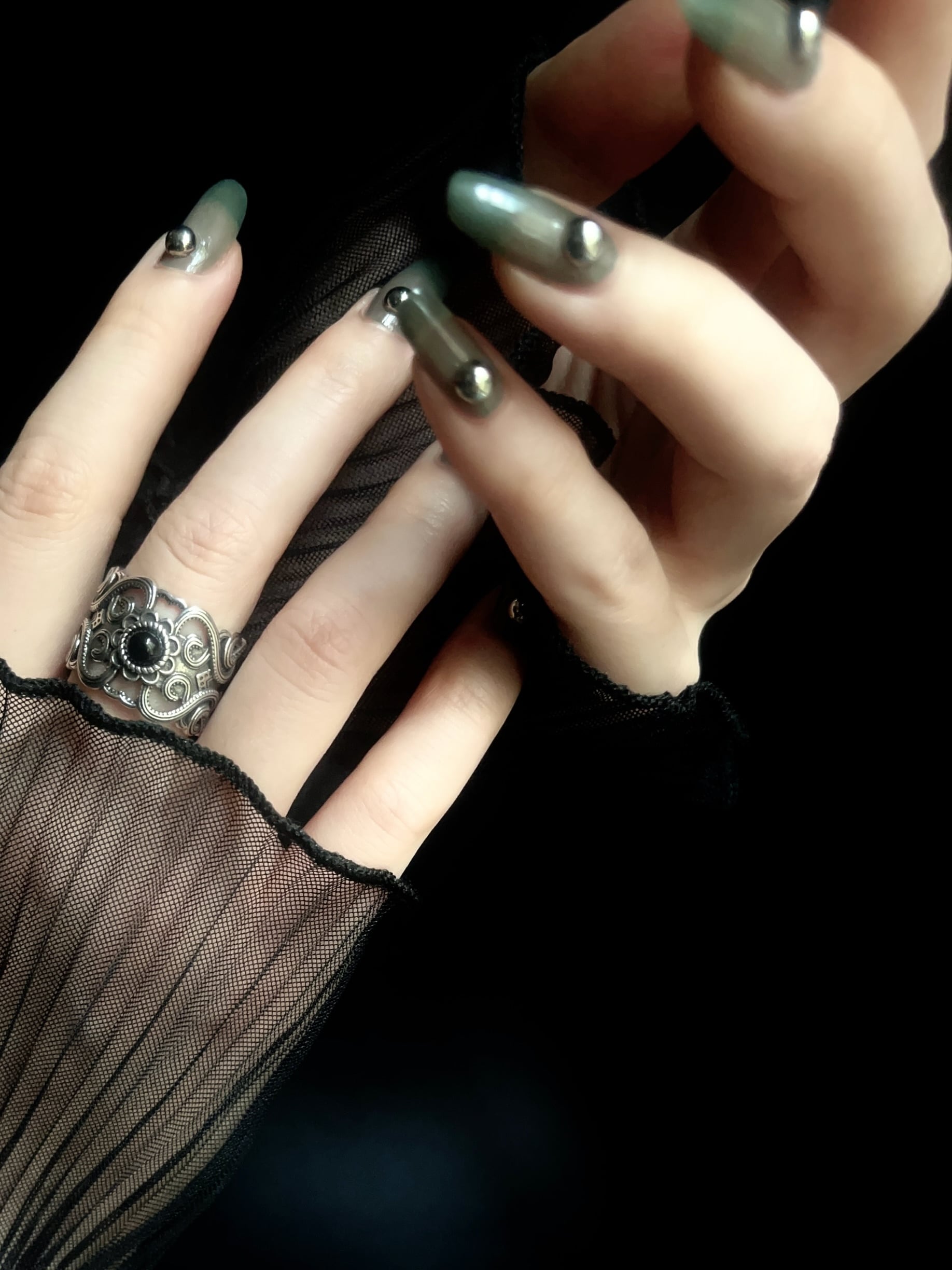 Silver925 Vintage Art Design Black Stone Wide Ring
