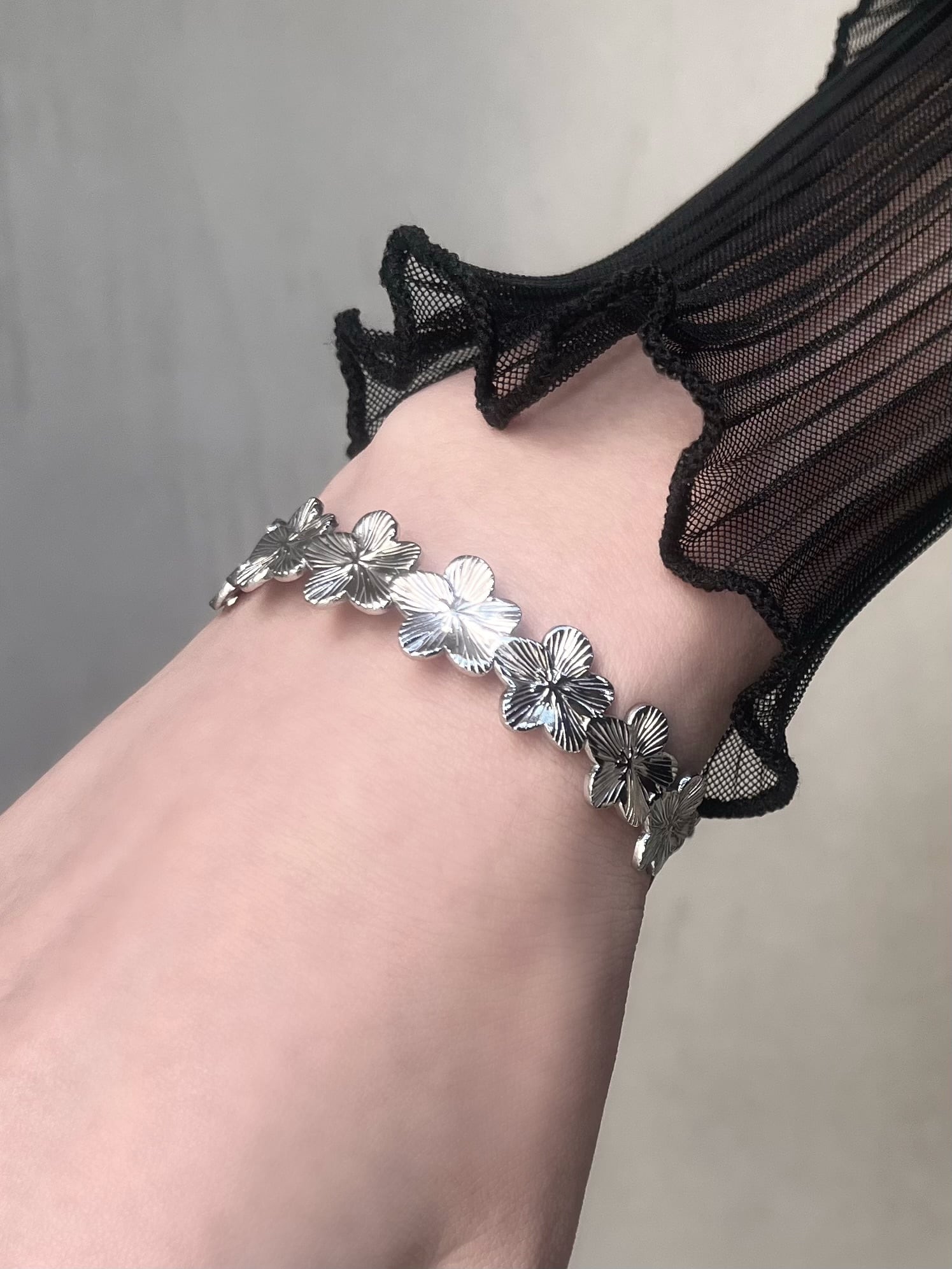Stainless Layered Flower Design Bangle