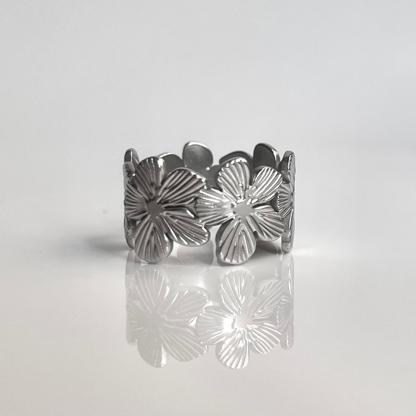 Stainless Layered Flower Design Ring
