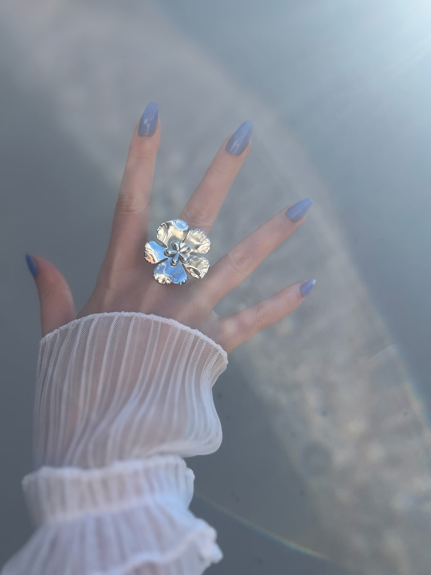 立体的に仕上げた花びらが光を受けて美しく反射し、