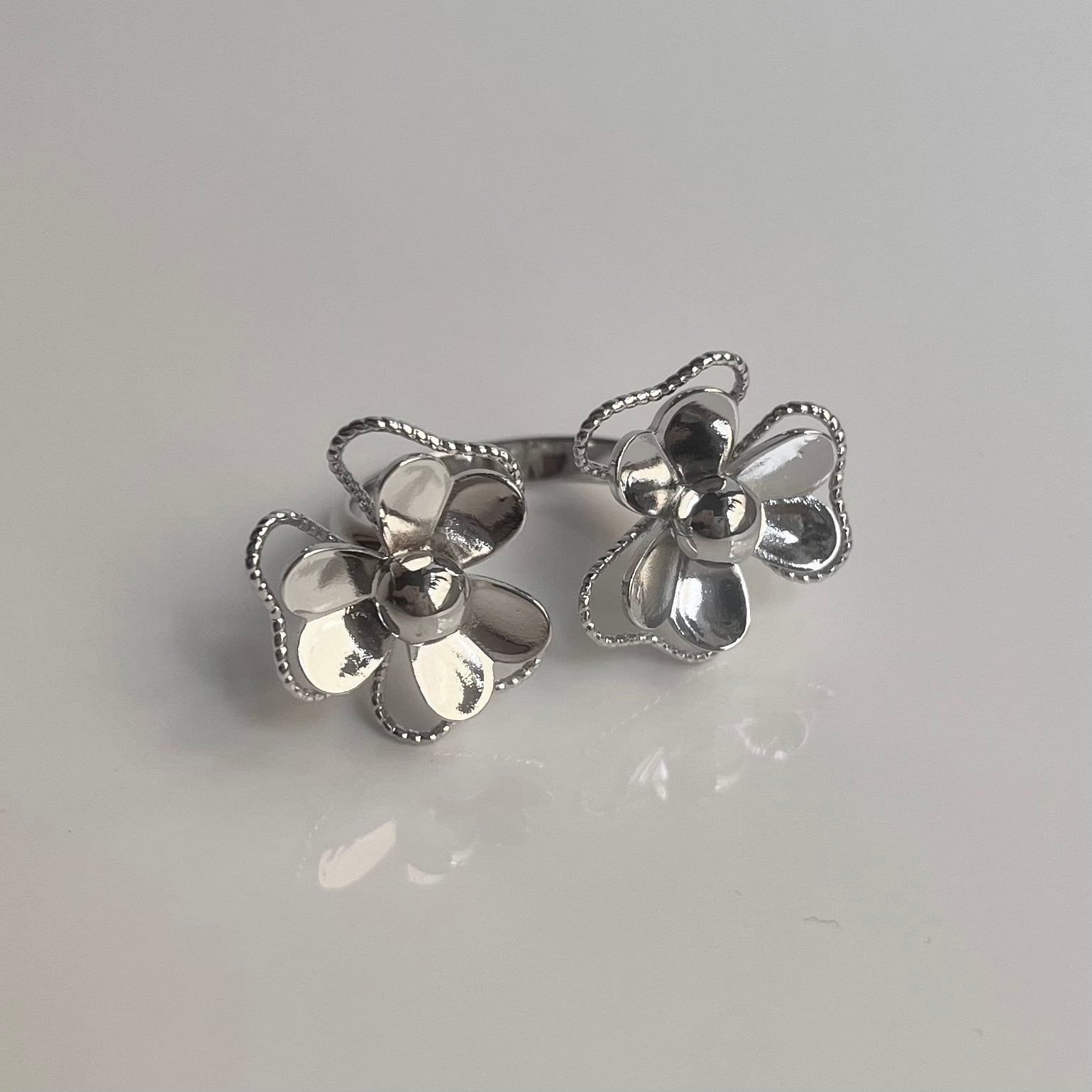 Silver925 Double Flower Line Work Design Ring