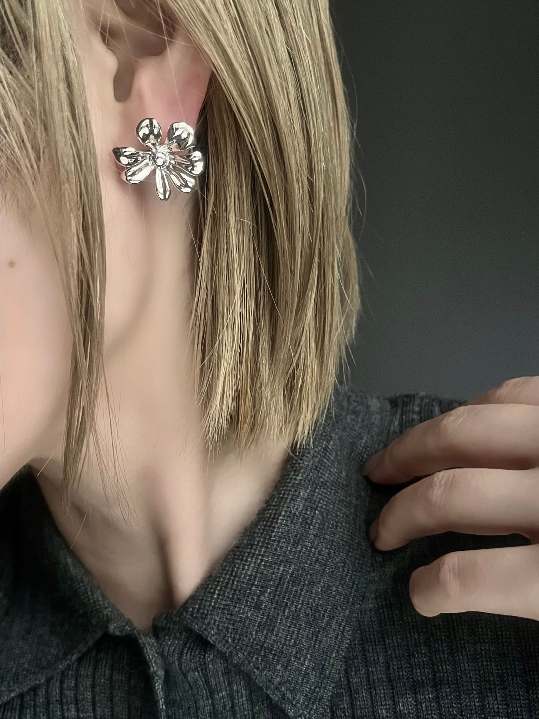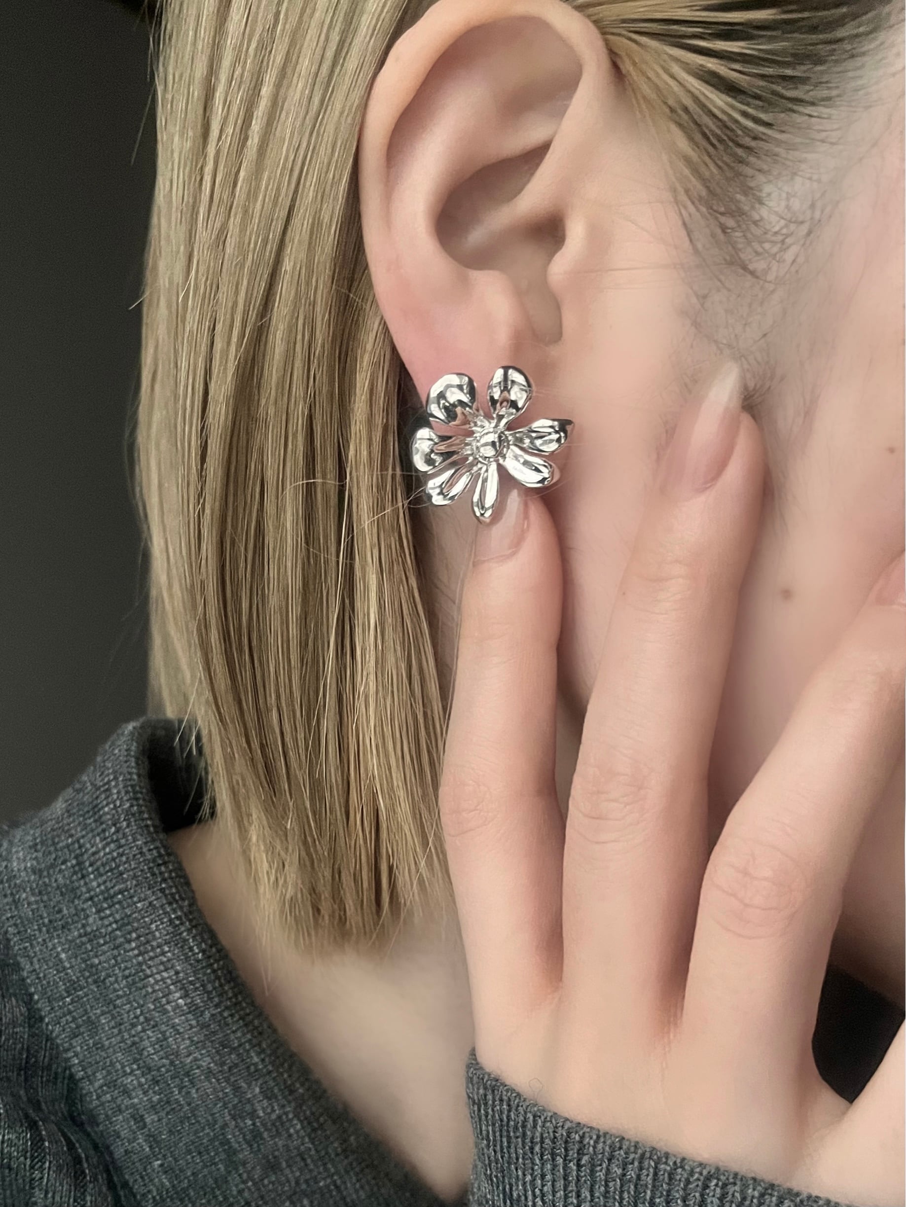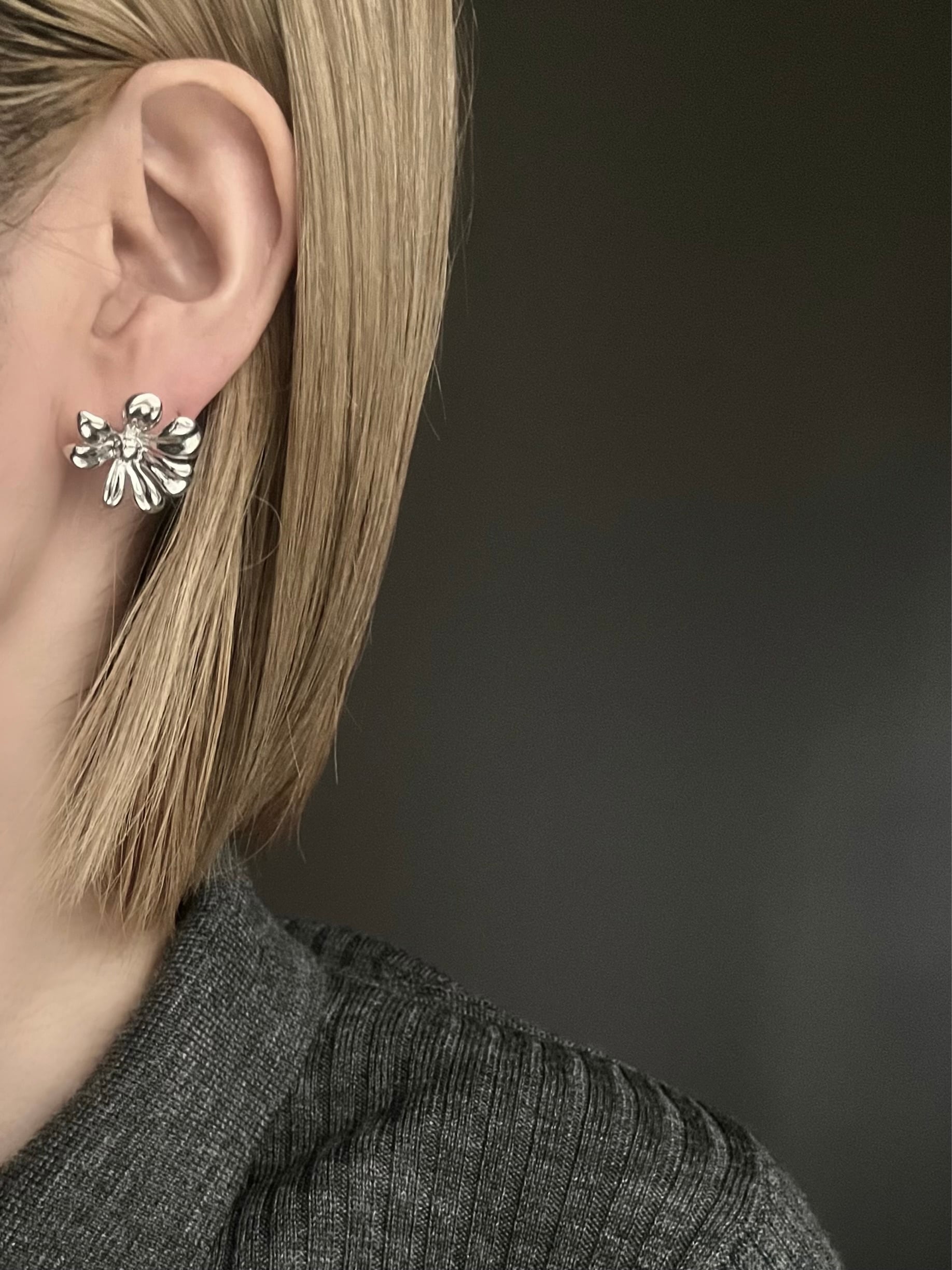 立体的に広がるフラワーモチーフが耳元で美しく輝く。