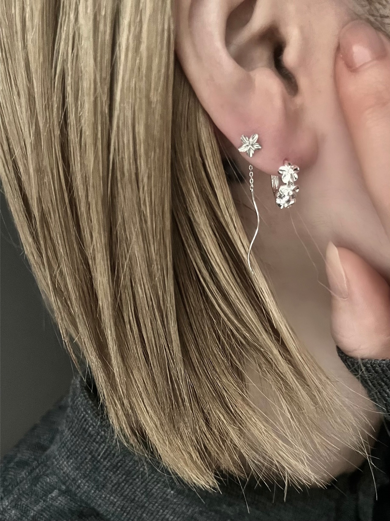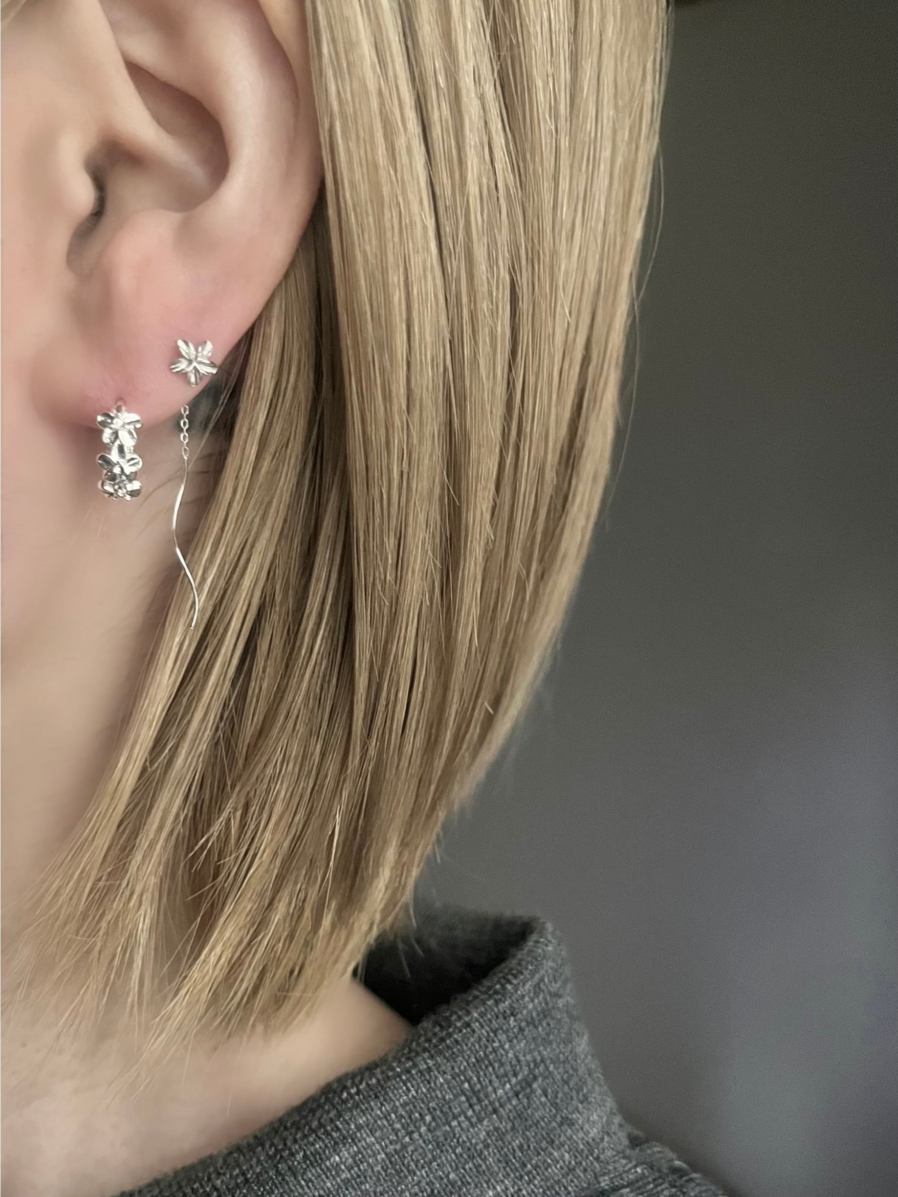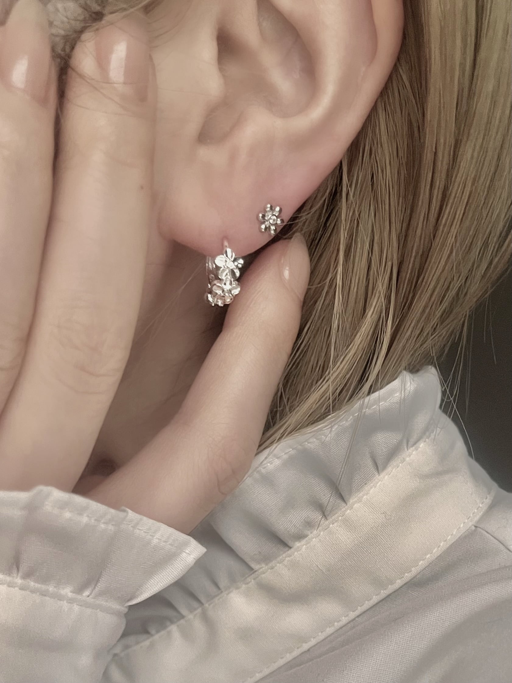 Silver925 Layered Flower Small Hoop Pierces