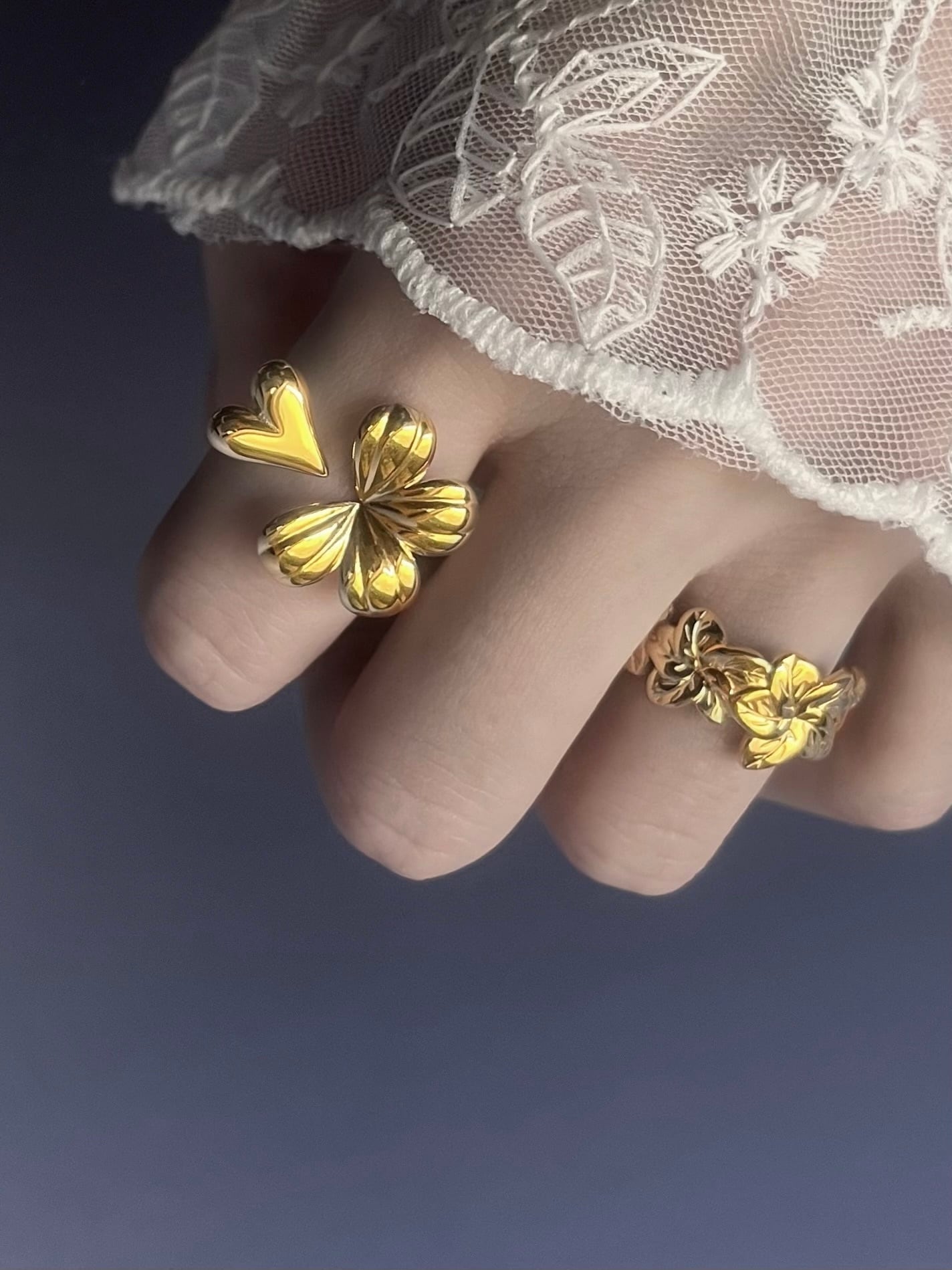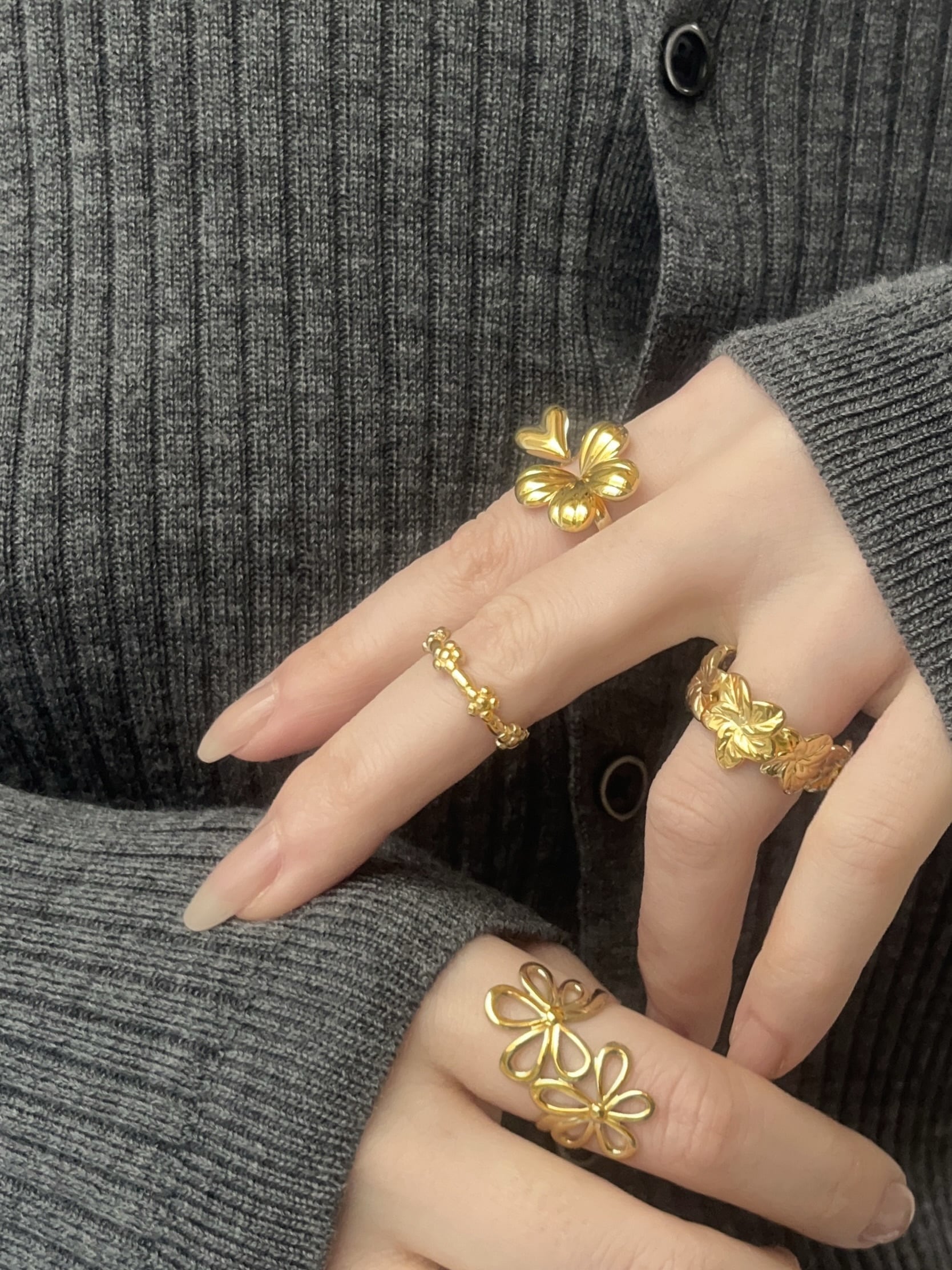 ふっくらとした立体的なフォルムが指元に華やかな輝きを添え、