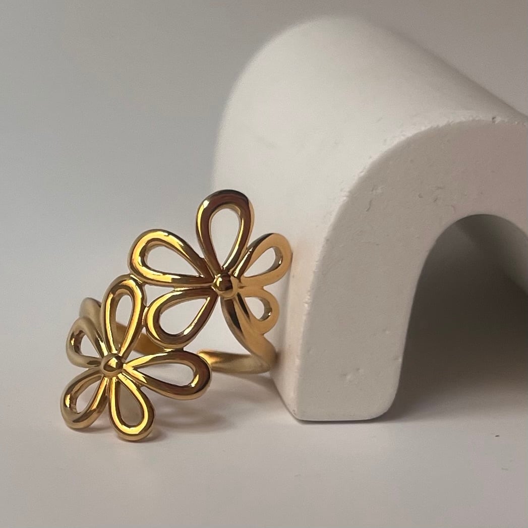 Stainless Gold Flower Design Ring No.2
