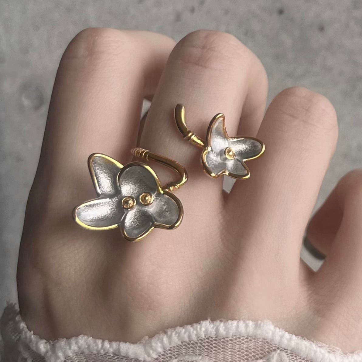 有機的なフォルムのフラワーモチーフが印象的なリング。