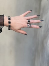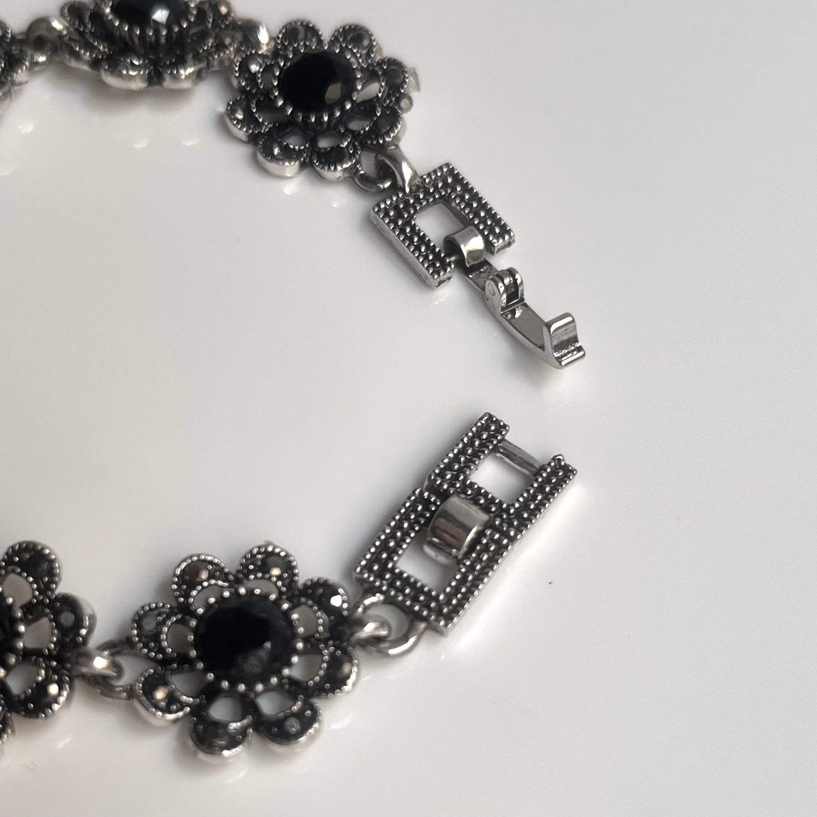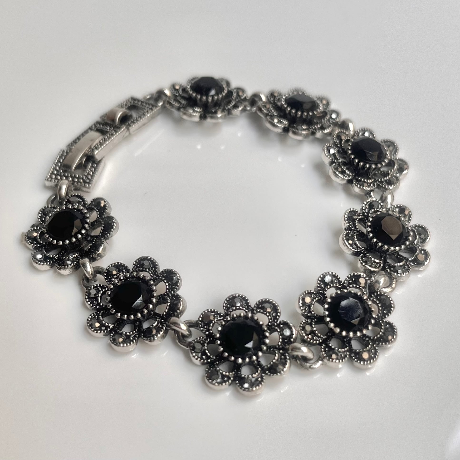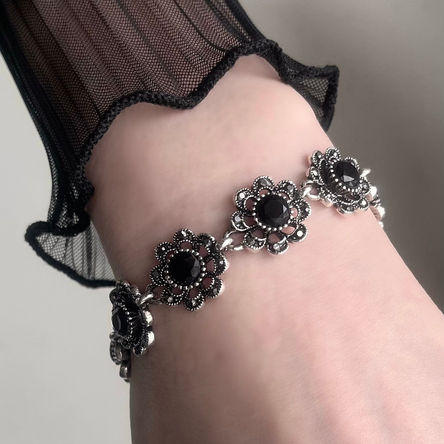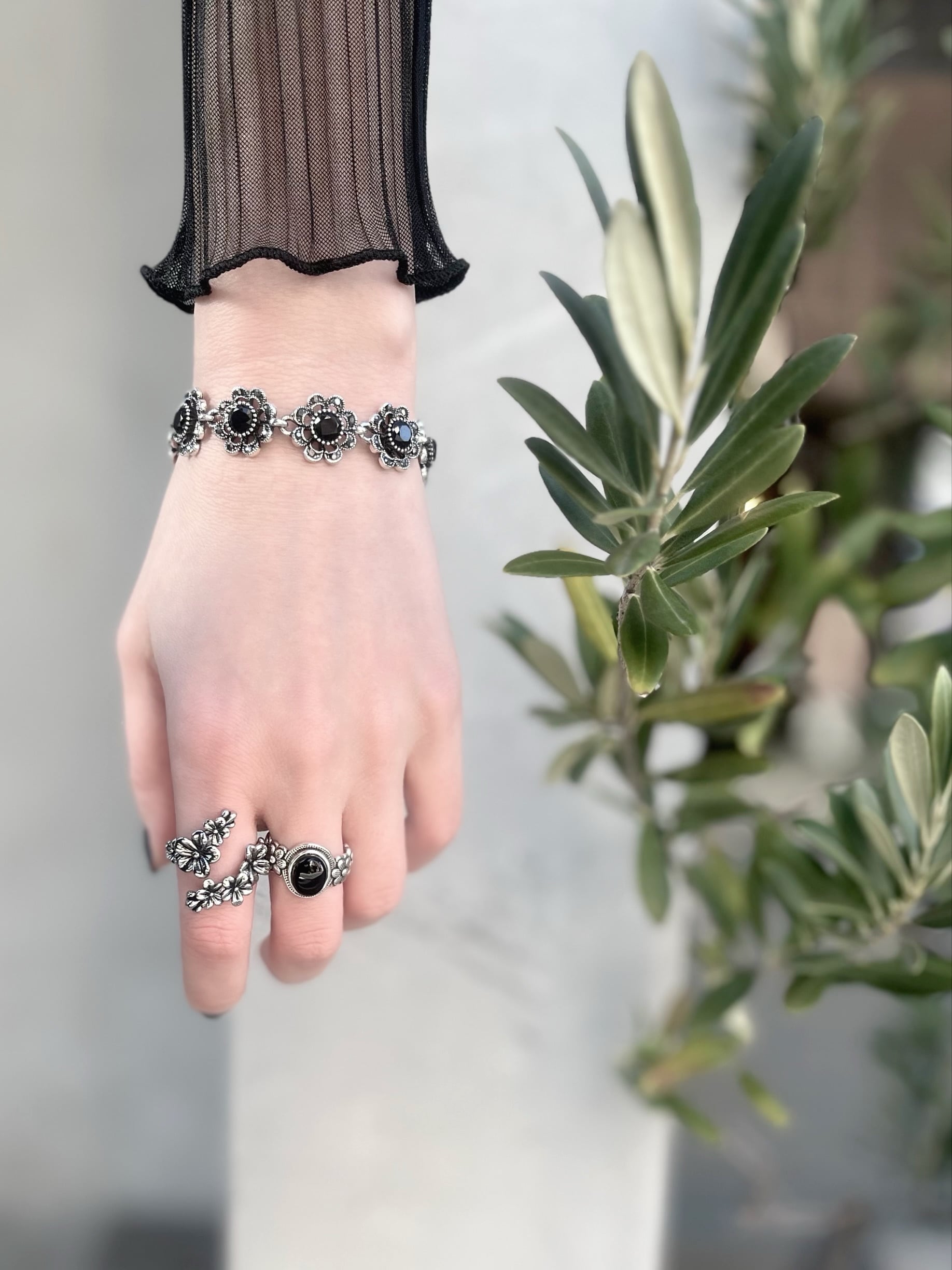 ブラックストーンが美しく輝くクラシカルなフラワーブレスレット。