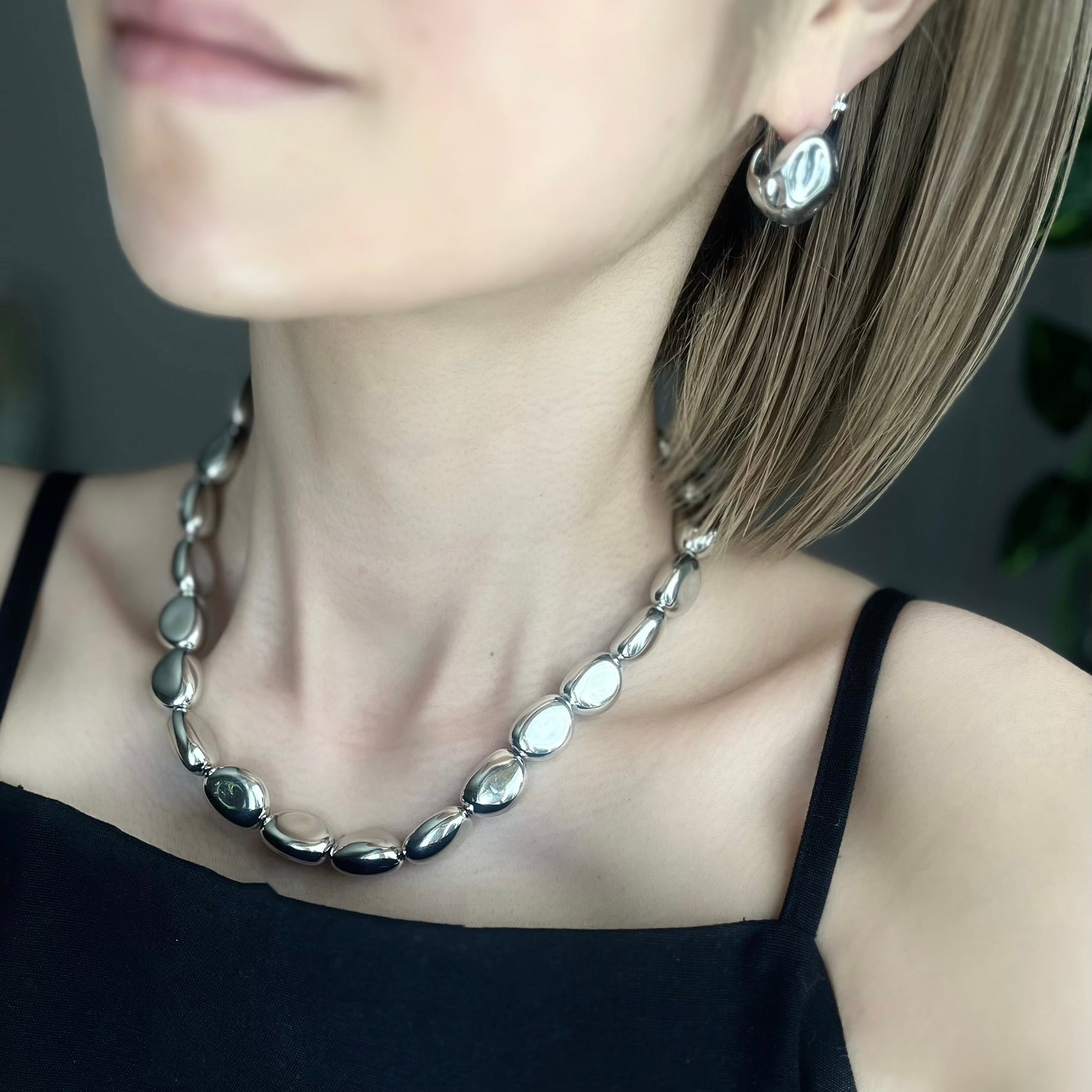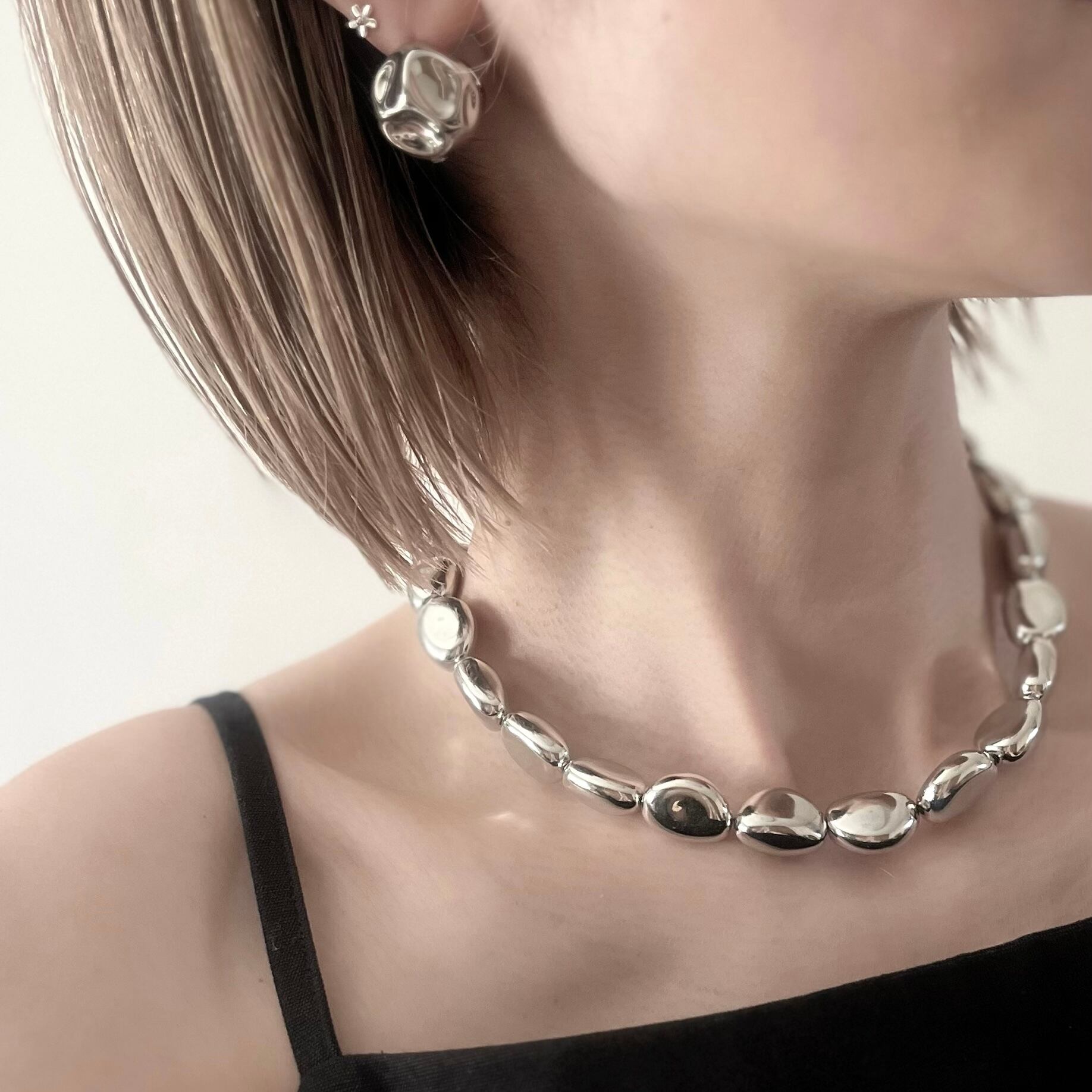 Stone Like All Silver Necklace