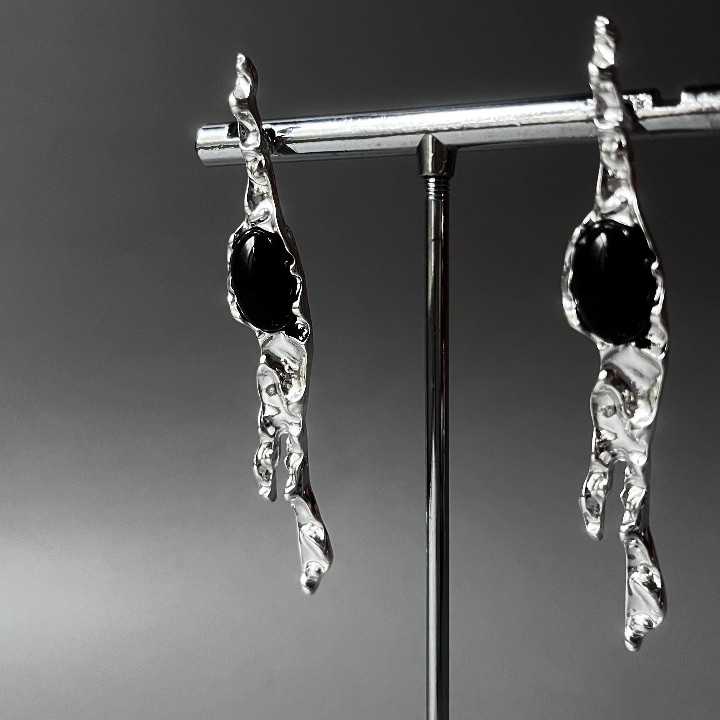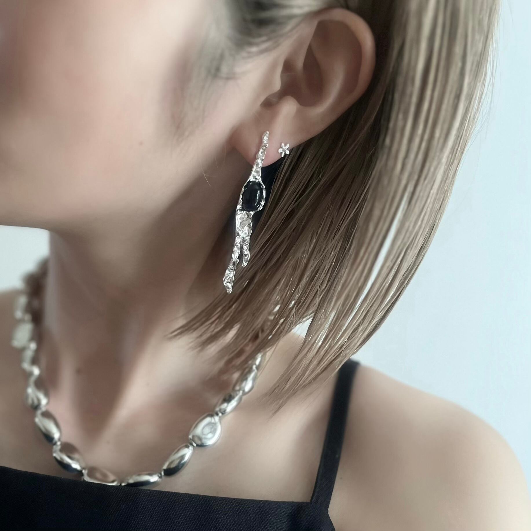 ブラックストーンをアクセントにスタイリングを一気に引き締めるラインピアスは