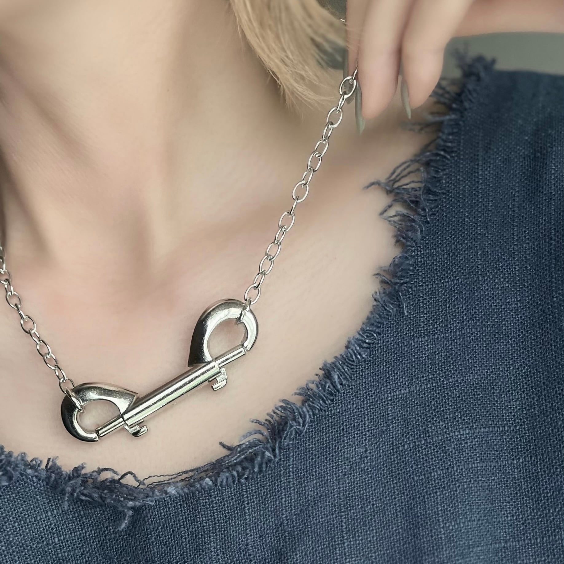 個性的なパーツを採用しいつものチェーンネックレスをアップデート。