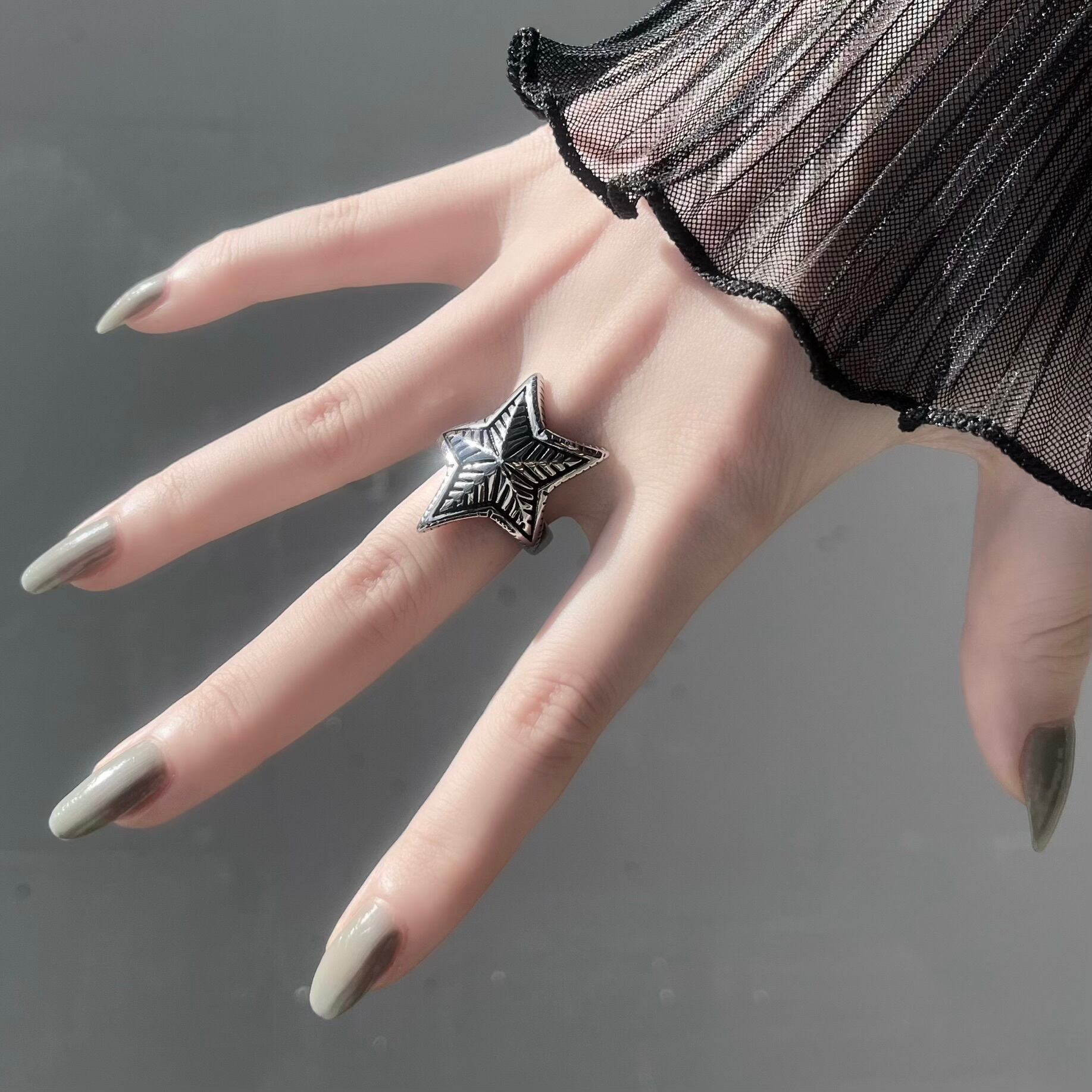 オールブラックやシンプルな装いに合わせたいボリューム感が魅力のリング。