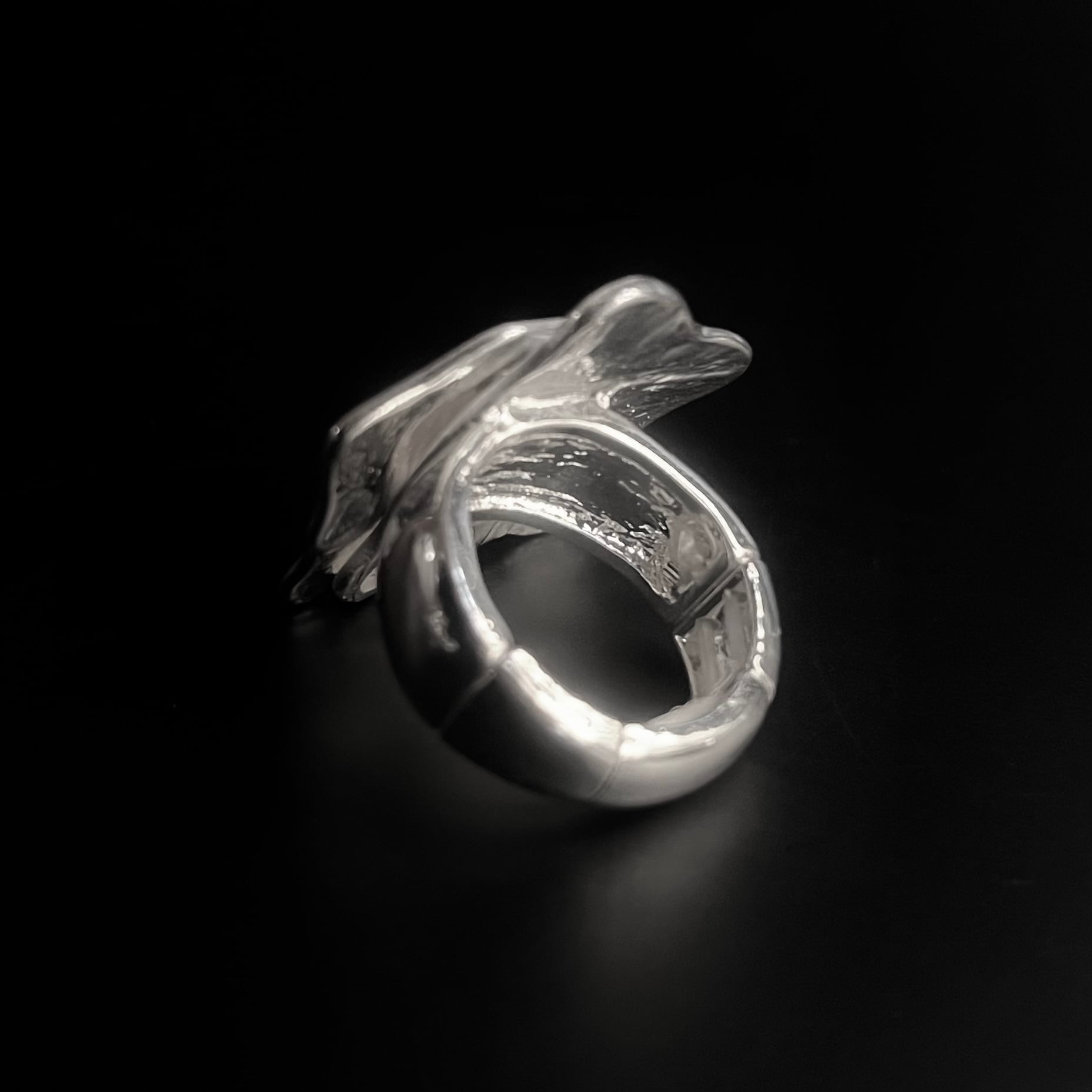 サンドブラスターで表面の艶を消しクールな印象に仕上げられた存在感抜群のデザインリング。