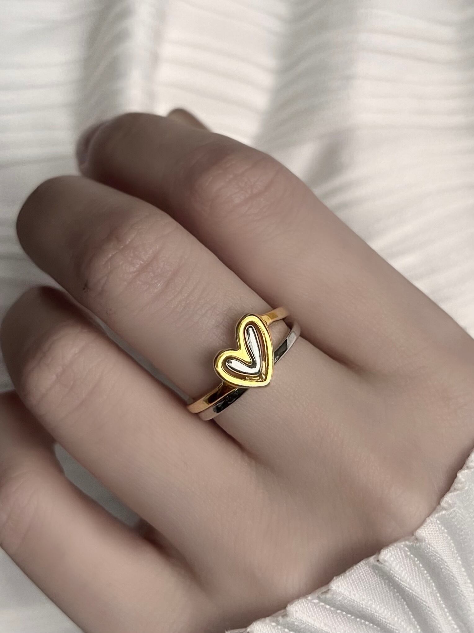 シルバー、ゴールドをそれぞれ別々にしても楽しめる2wayデザインリング。