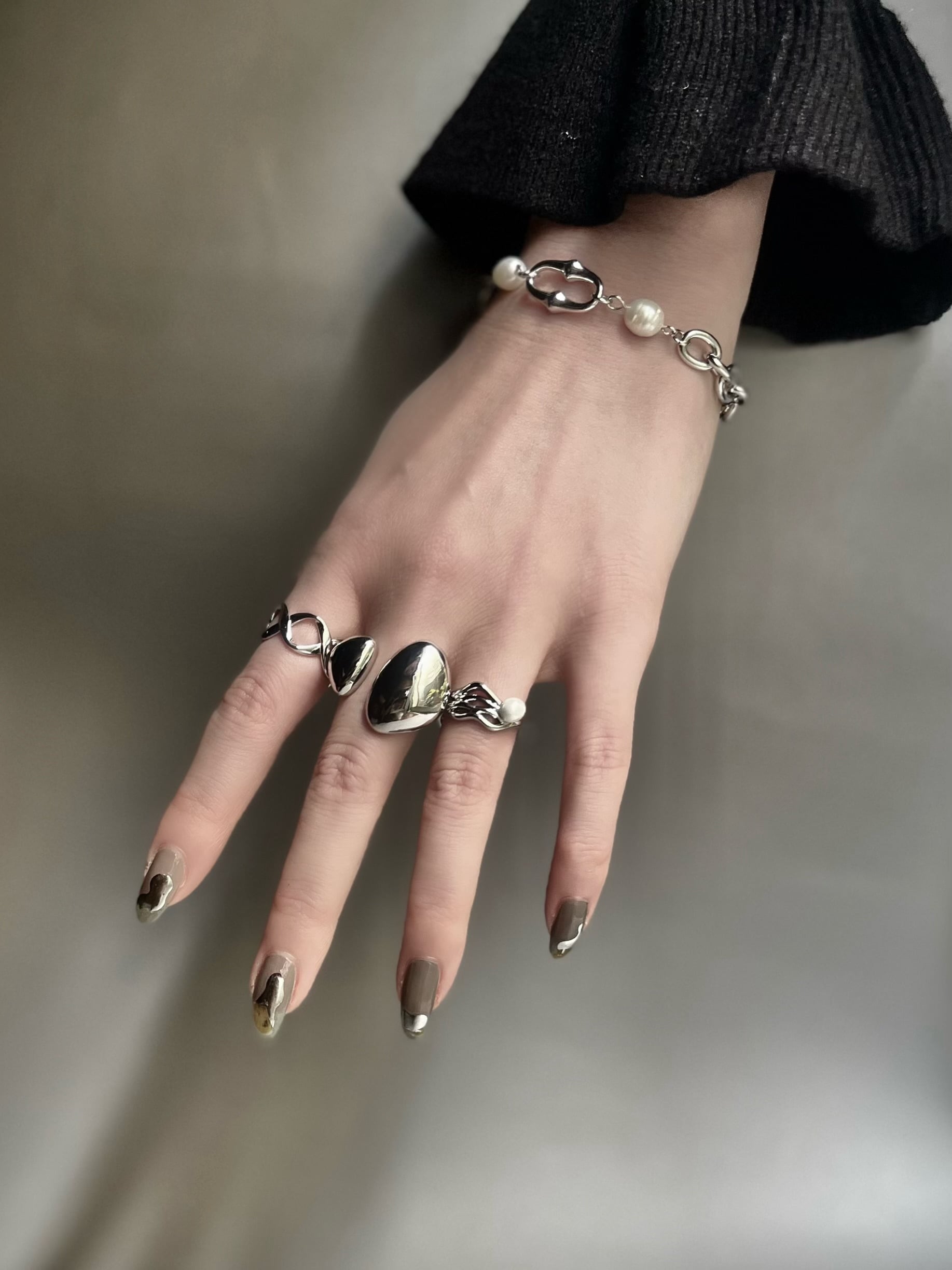 一癖あるチェーンと不規則なパールのコンビネーションが