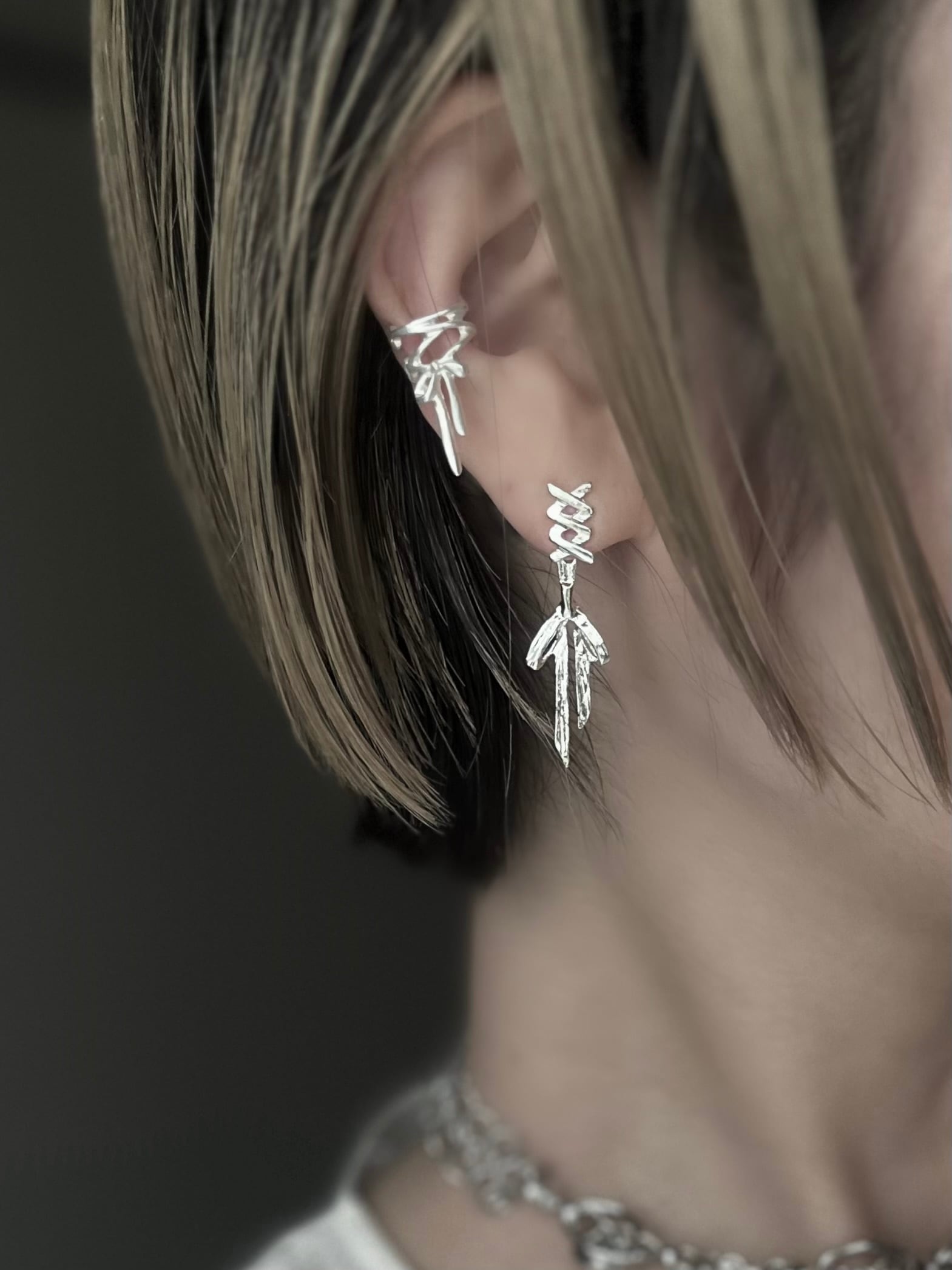 マッドな質感がカジュアルさもプラスしてくれるレースアップリボンイヤーカフ。