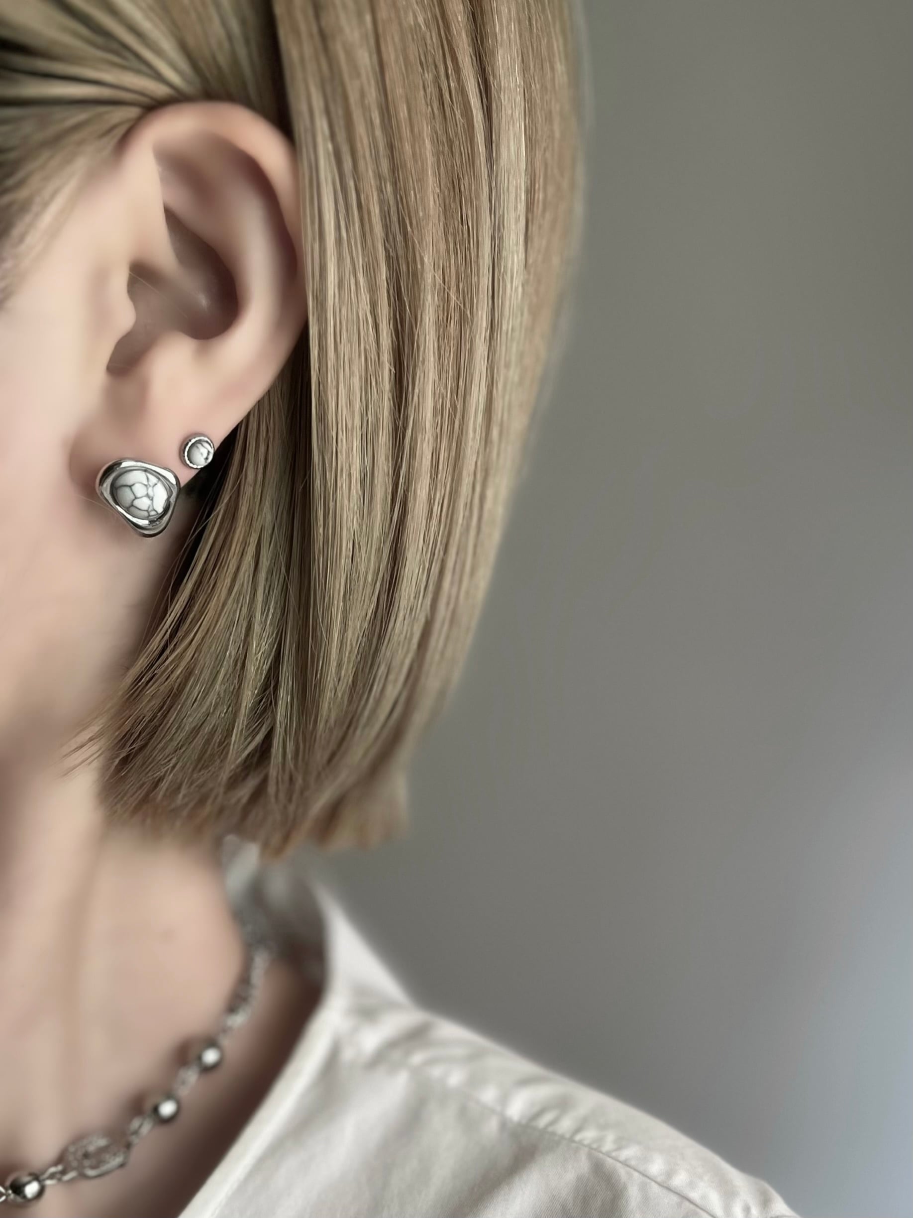 Silver925 Cracked Design Stone Oval Pierces