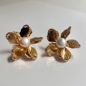 Silver925 Post Pearl Gold Flower Motif Pierces